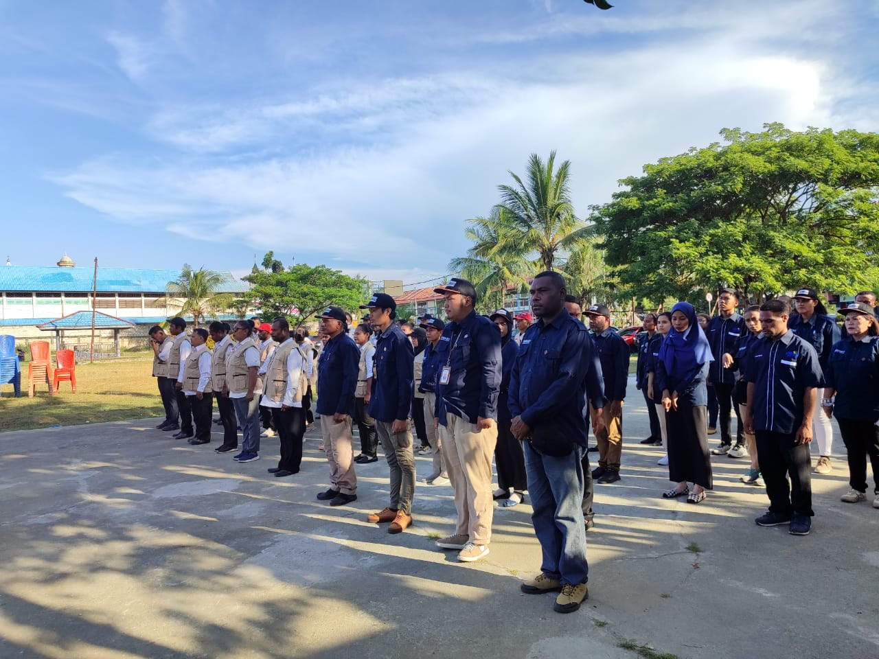 Apel siaga dipimpin oleh Ketua Bawaslu Kabupaten Jayapura, Zacharias Rumbewas  bersama Forkompimda di Kabupaten Jayapura, di Lapangan Theys Eluay Sentani, Senin (20/11/2023) sore.