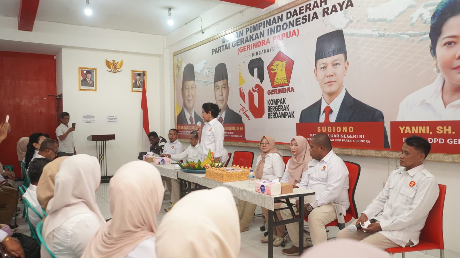 Ketua DPD Partai Gerindra Papua, Yanni, dalam sambutan tunggalnya menegaskan kepada seluruh kader tentang sejarah panjang perjuangan Partai Gerindra sampai di usia 18 tahun mendampingi Ketua Umum Partai Gerindra Prabowo Subianto, hingga akhirnya dipercaya rakyat sebagai Presiden Republik Indonesia.