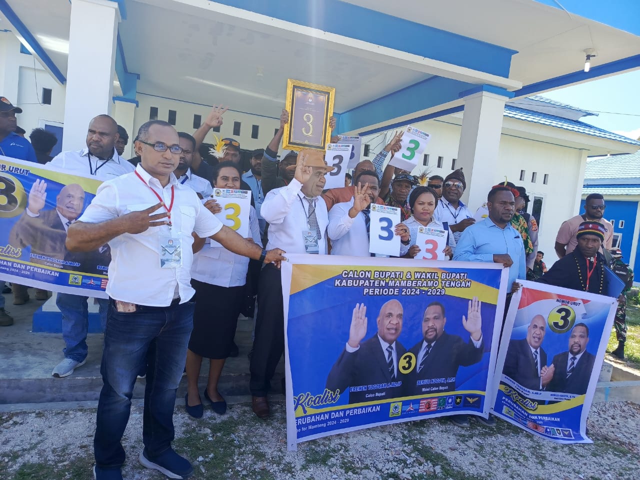 Bagi Paslon Eremen Yogosam – Berius A Kogoya mendapat nomor tiga (3) sangat bersyukur sebab nomor tersebut merupakan nomor yang memang di nantikan, kata Calon Bupati (Cabup) Kabupaten Membramo Tengah, Eremen Yogosam ketika menjawab pertanyaan usai pengambilan nomor urut di Memteng, Senin 23/9/2024.