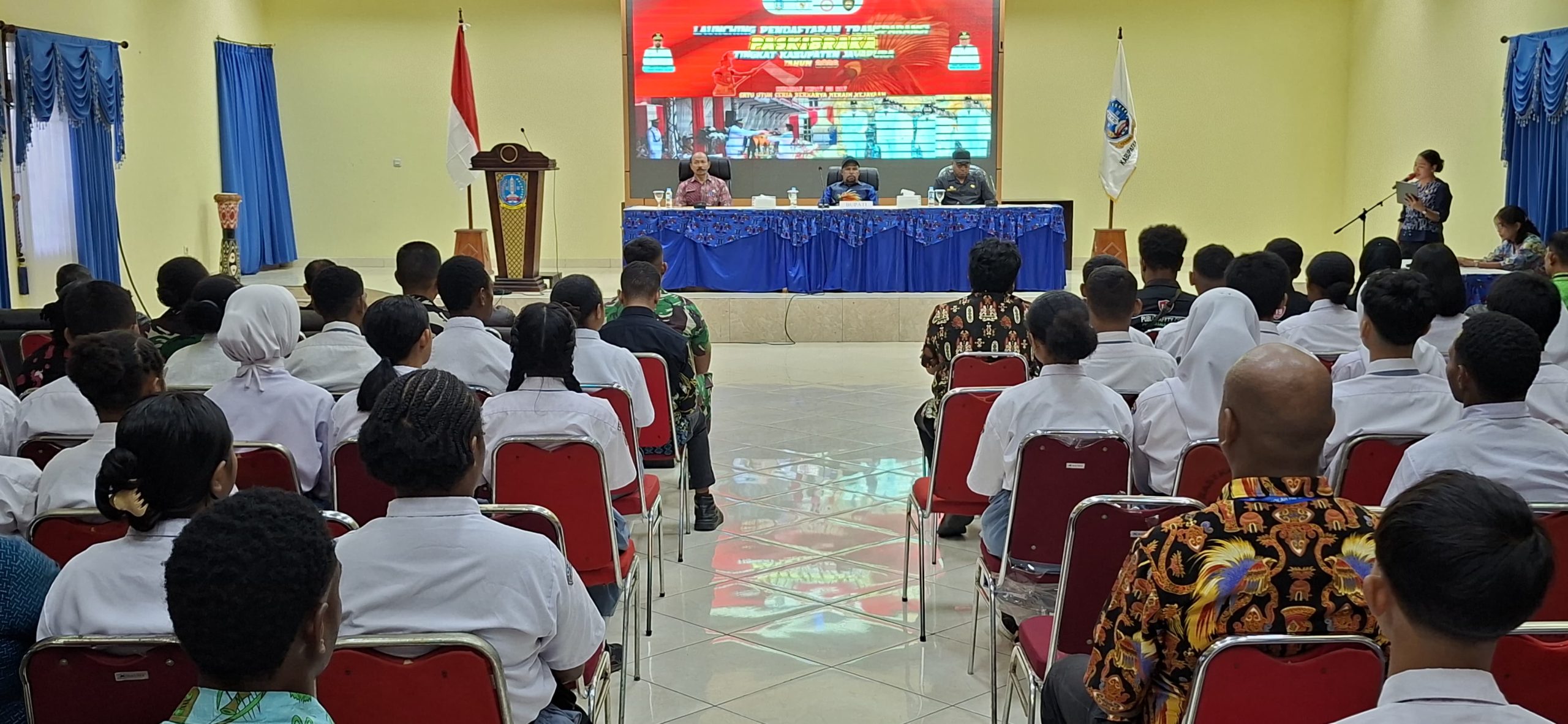 SENTANI, Jelajahpapua.com – Badan Kesatuan Bangsa dan Politik Kabupaten Jayapura Launching Pendaftaran Transparansi Paskibraka tingkat kabupaten jayapura tahun 2026. Dengan dasar pelaksanaan kegiatan berdasarkan Peraturan Presiden Nomor 57 Tahun 2022 tentang Program Pasukan Pengibar Bendera Pusaka, yang dibuka langsung oleh Bupati Jayapura, Dr. Yunus Wonda, S.H.,M.H, yang berlangsung di Aula 2 Kantor Bupati Jayapura, Jumat 13/03/2026.