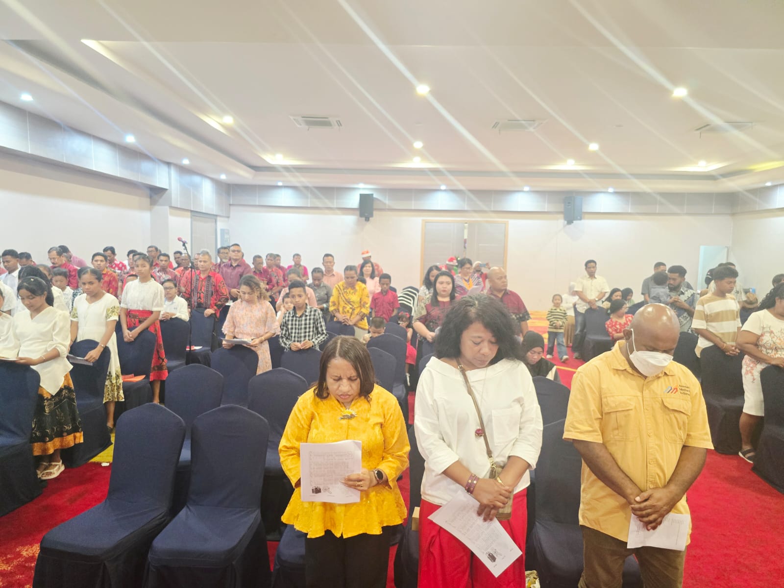 SENTANI, Jelajahpapua.com – Perayaan Natal Jurnali Papua diawali dengan Ibadah Sabda dipimpin Pastor Goklian Lumbangaol, OFM. Pada perayaan Natal, paduan suara Fraternitas Patrum Catholicorum (FPC) Choir bersama anak-anak SEKAMI Gereja Katolik Paroki Kristus Terang Dunia Waena, Kota Jayapura, turut ambil bagian menyemarakkan Perayaan Natal dan Lepas Sambut Tahun Baru 2026 Jurnalis se-Papua yang berlangsung di Suni Hotel Sentani, Kabupaten Jayapura, Sabtu (24/1/2026).