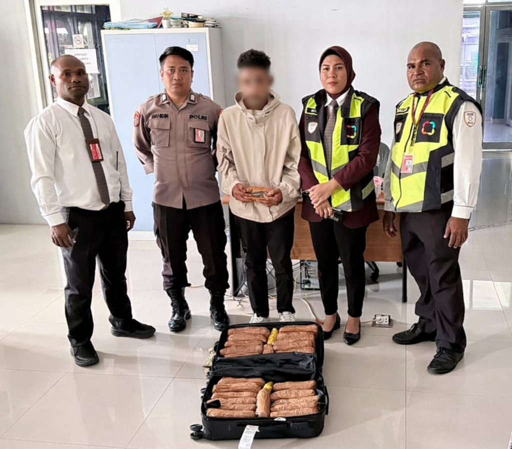 JAYAPURA, Jelajahpapua.com – Petugas Aviation Security (Avsec) di Bandara Internasional Sentani kembali menunjukkan profesionalisme dan ketelitian dalam menjaga keamanan operasional penerbangan. Pada Sabtu (4/4), petugas berhasil menggagalkan upaya penyelundupan narkotika jenis ganja yang dibawa oleh seorang penumpang.